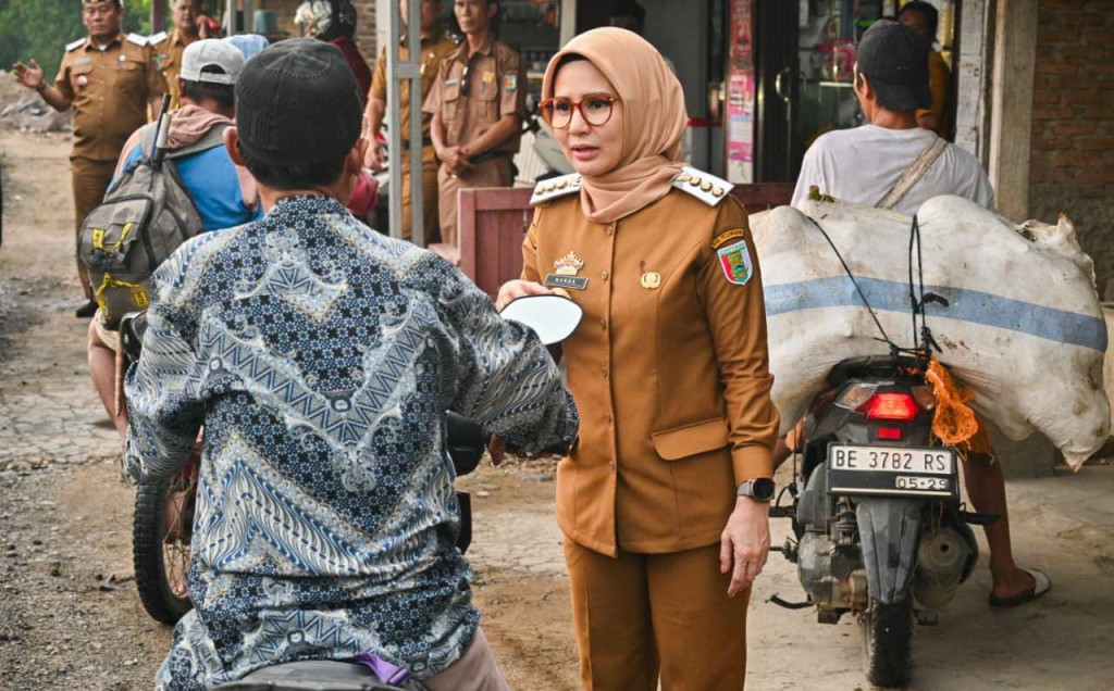 INSIDE POLITIK– Bupati Pesawaran Hj. Nanda Indira Bastian, S.E., M.M., melakukan peninjauan langsung terhadap progres perbaikan ruas jalan Kubu Batu – Kota Jawa, Kecamatan Way Khilau, Senin (1/9/2025). Jalan sepanjang hampir 6 kilometer ini merupakan jalur vital yang menghubungkan Desa Kubu Batu, Gunung Sari, dan Kota Jawa, serta menjadi akses utama bagi warga dalam kegiatan ekonomi, pendidikan, transportasi, dan pertanian.