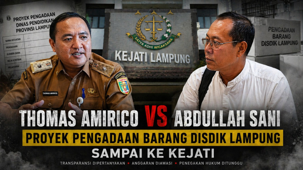 INSIDE POLITIK- Polemik pengadaan barang di lingkungan Dinas Pendidikan dan Kebudayaan (Disdikbud) Provinsi Lampung tahun anggaran 2025 resmi bergulir ke ranah hukum. Penggiat kebijakan publik Indonesia, Abdullah Sani, melaporkan Kepala Disdikbud Lampung, Thomas Amirico, ke Kejaksaan Tinggi (Kejati) Lampung pada 24 April 2026.