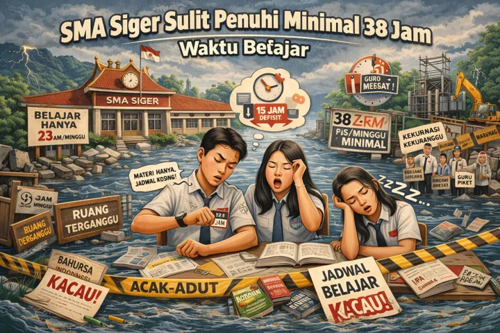 INSIDE POLITIK- SMA Siger Bandar Lampung diperkirakan tidak mampu memenuhi ketentuan minimal 38 jam belajar per minggu, meski telah menambah jam pelajaran pada hari Senin hingga Sabtu. Keterbatasan fasilitas dan penggunaan gedung bersama menjadi hambatan utama.