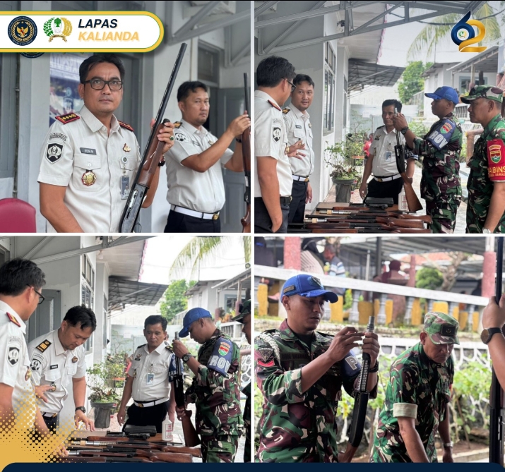 INSIDE POLITIK- Lembaga Pemasyarakatan Kelas IIA Kalianda bekerja sama dengan Kodim 0421 Lampung Selatan melaksanakan kegiatan perawatan dan pemeliharaan senjata api inventaris, Selasa (28/4/2026). Kegiatan ini dipimpin langsung oleh Kepala Lapas Kalianda, Beni Nurrahman, sebagai bagian dari upaya menjaga kesiapsiagaan pengamanan di lingkungan lapas.