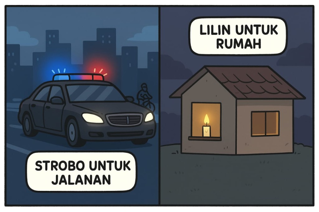 Mungkin sudah waktunya kita bikin aturan baru: “Siapa yang pakai strobo tanpa hak resmi, wajib berbagi token listrik gratis untuk 100 rumah.”