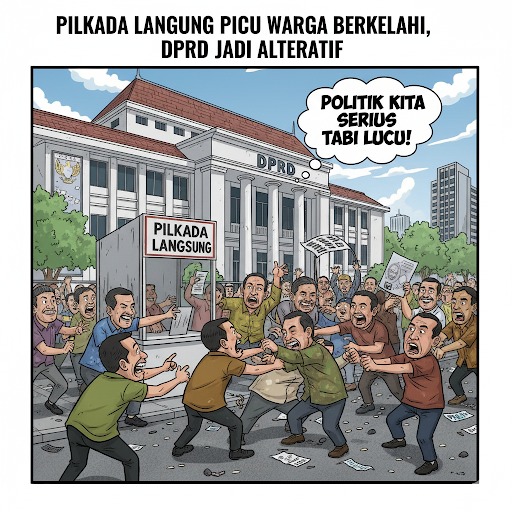 “Pilkada langsung bikin berkelahi, DPRD jauh lebih chill—tapi kita yang tertahan, ya?”